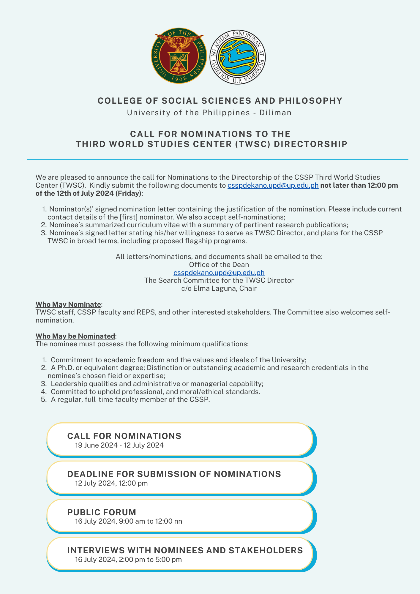 SEARCH FOR THE THIRD WORLD STUDIES CENTER (TWSC) DIRECTOR (2024-2027)